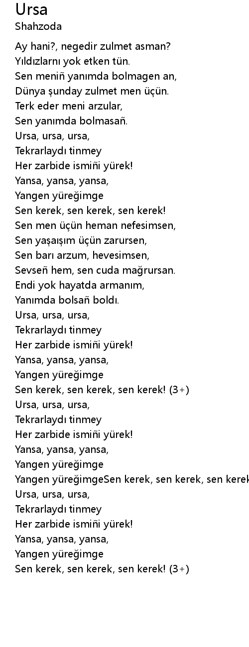 | [02:28.700] | Yangen yüreğimgeSen kerek, sen kerek, sen kerek! (3+) |