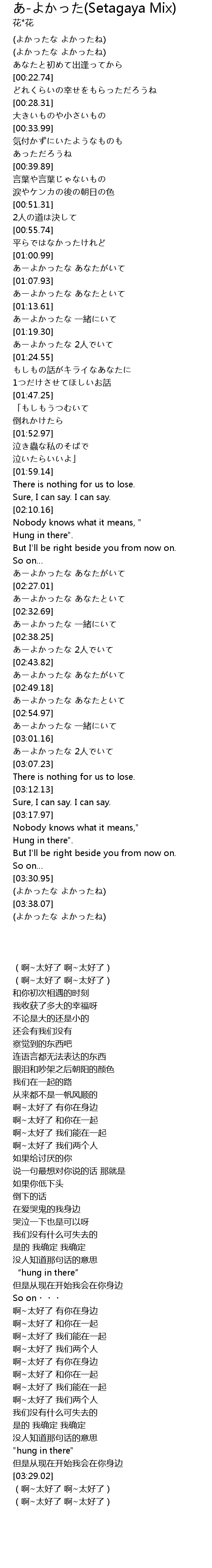 | 歌曲 | あ-よかった(Setagaya Mix) |