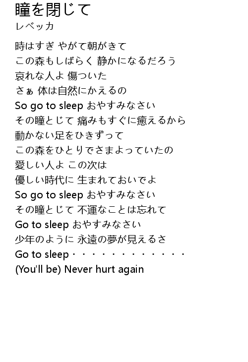 | So go to sleep おやすみなさい | |