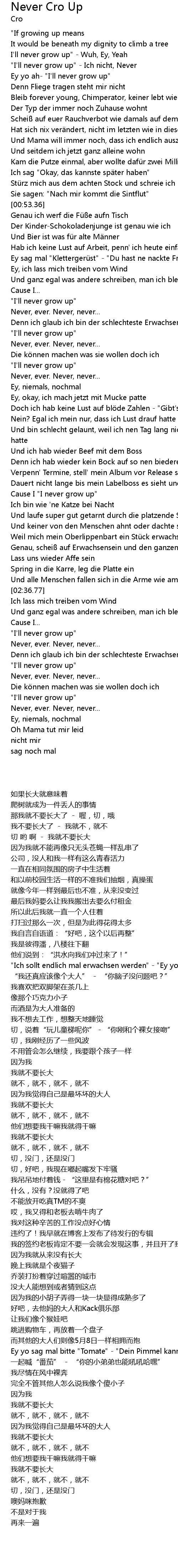 | [00:22.09] | Bleib forever young, Chimperator, keiner lebt wie ich zài Chimperator |