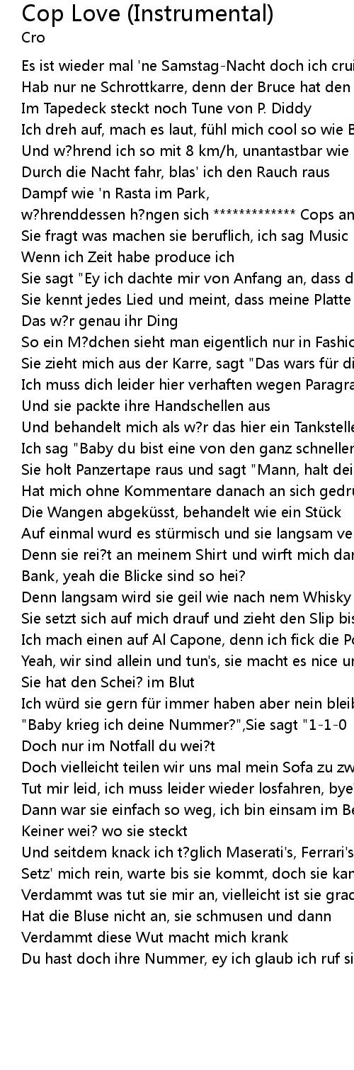 | [00:43.93] | w?hrenddessen h?ngen sich ************* Cops an mein' Arsch |