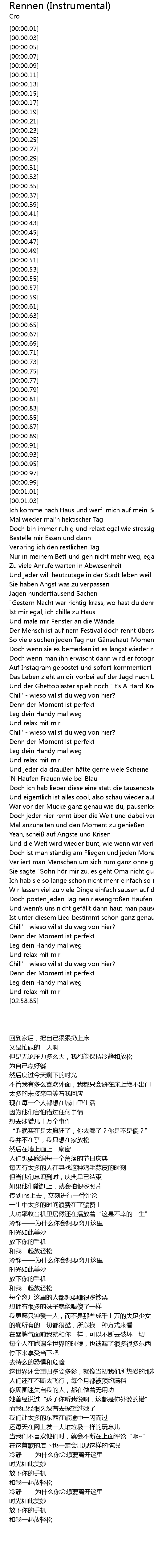 | [01:30.00] | Chill' - wieso willst du weg von hier? |