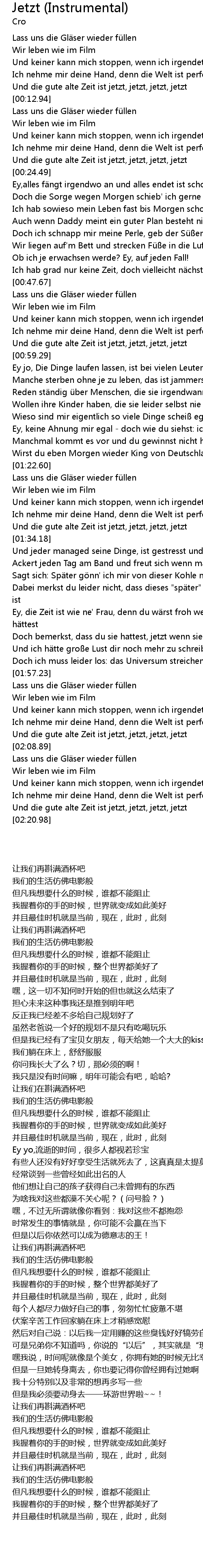 | [02:17.76] | Und die gute alte Zeit ist jetzt, jetzt, jetzt, jetzt |