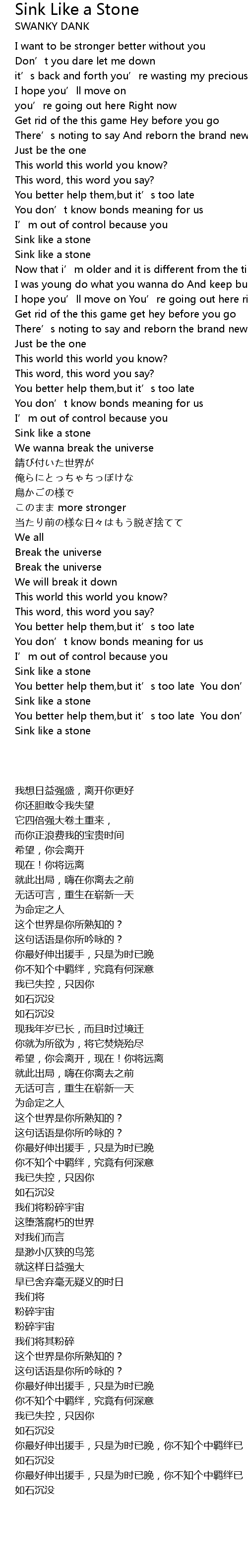 | 歌曲 | Sink Like a Stone |