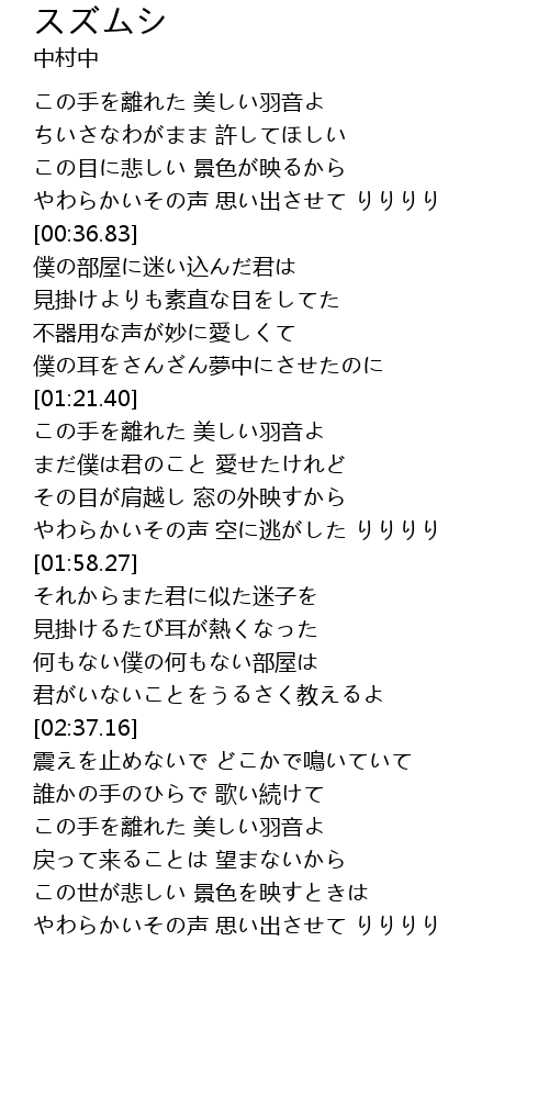 | [03:03.05] | この手を離れた 美しい羽音よ |