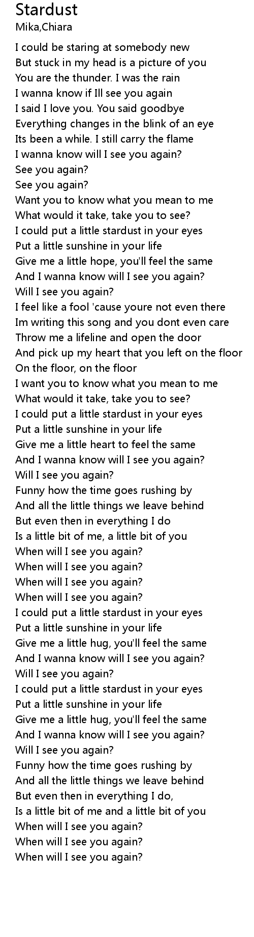 | And I wanna know will I see you again? | |
