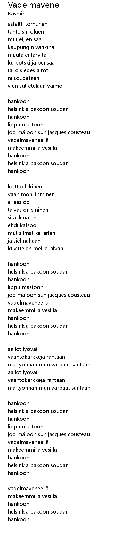 | helsinkiä pakoon soudan | |