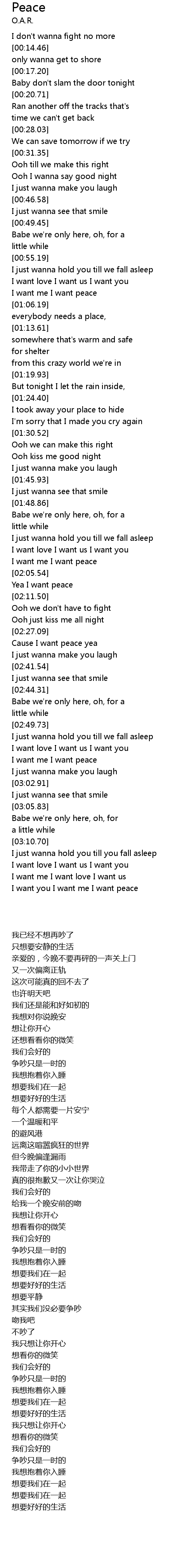 I want me I want peace |