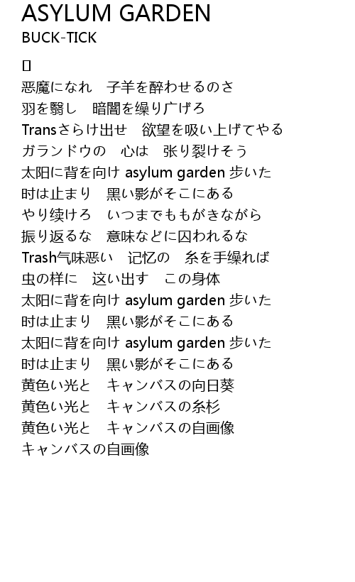 | 太阳に背を向け asylum garden 步いた | |