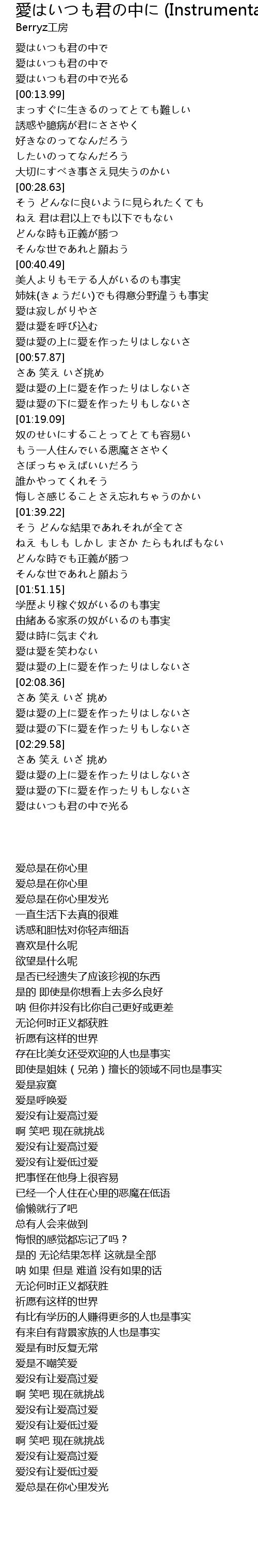 | 歌曲 | 愛はいつも君の中に (Instrumental) |