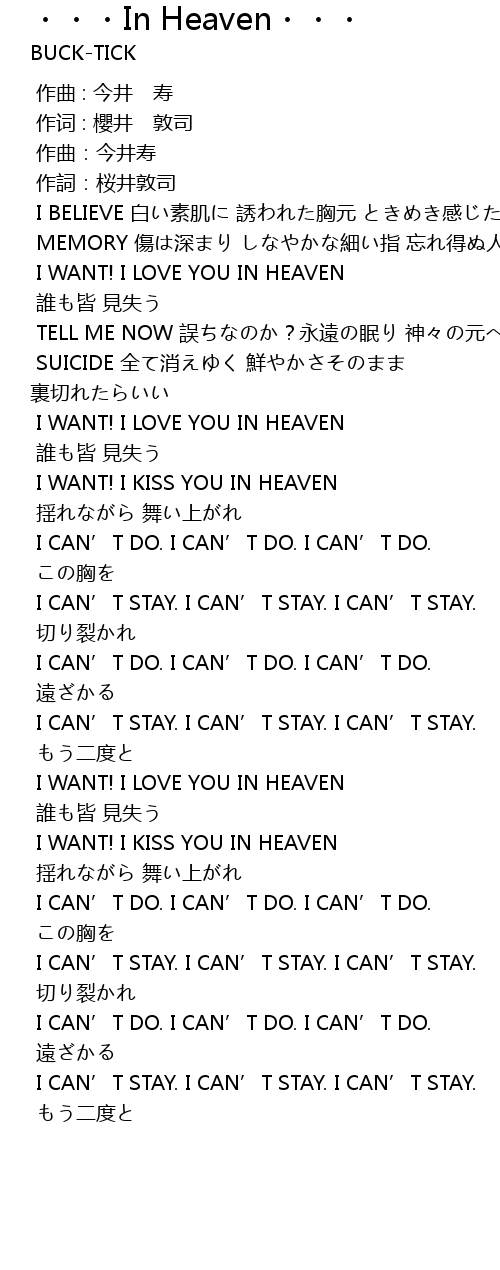 | [00:44.934] | I WANT! I LOVE YOU IN HEAVEN |