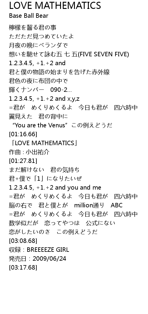| [01:18.54] | LOVE MATHEMATICS |