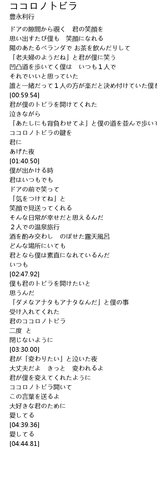 | [04:18.57] | ココロノトビラ開いて |