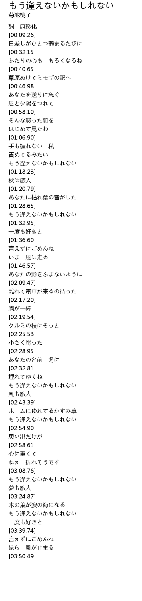 | [03:32.37] | もう逢えないかもしれない |