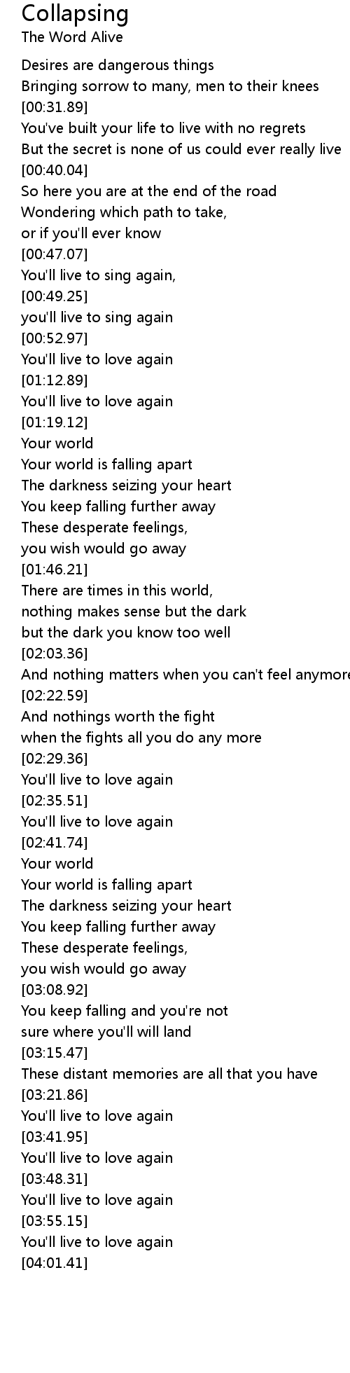 Collapsing 歌词