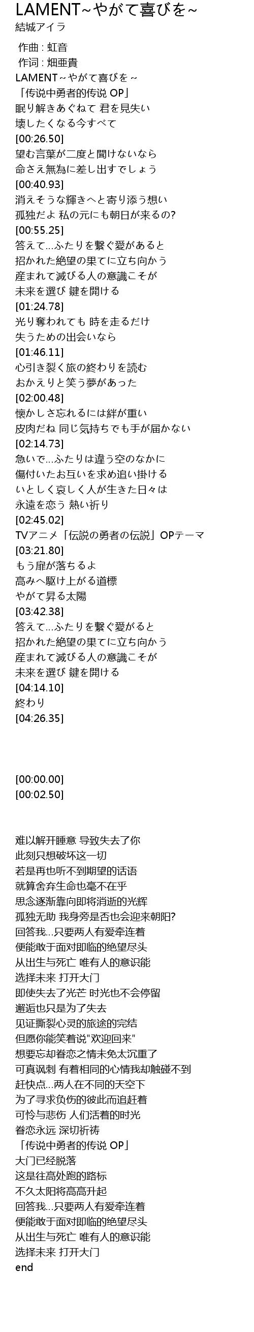 | [00:00.00] | LAMENT~やがて喜びを~ |