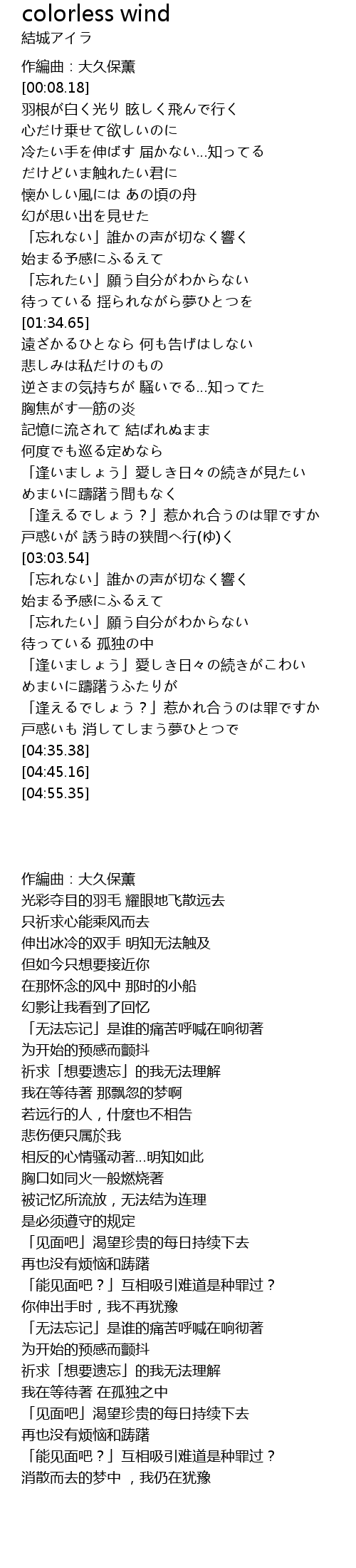 | [04:00.71] | 「逢いましょう」愛しき日々の続きがこわい |