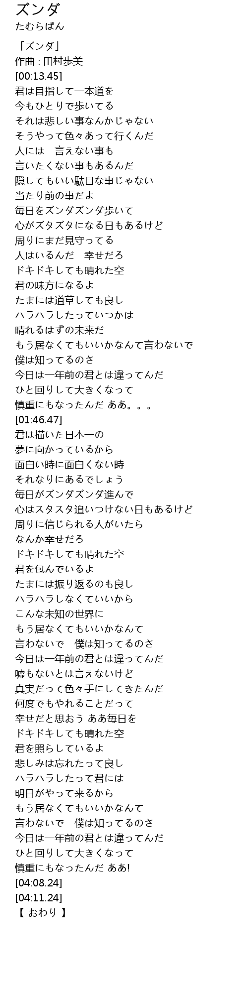 | [00:43.81] | 毎日をズンダズンダ歩いて |