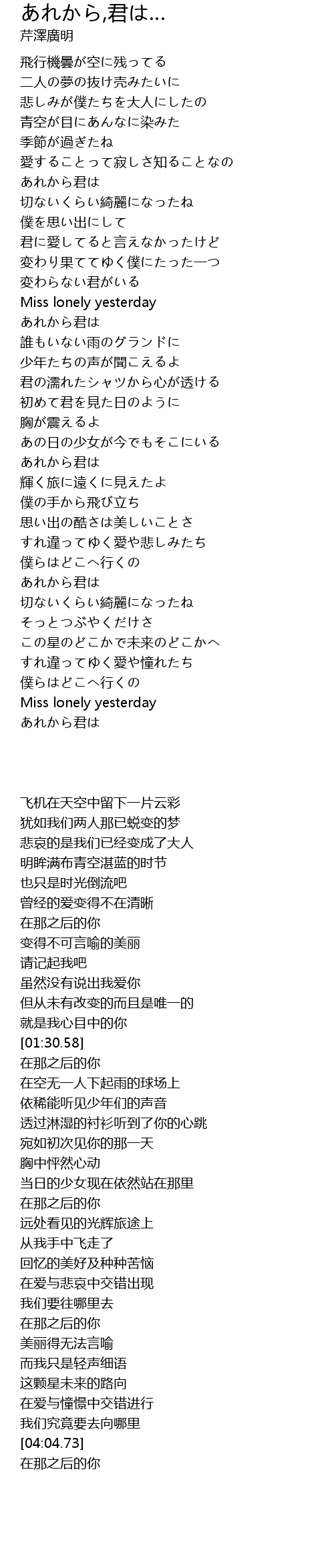 | [00:58.05] | 切ないくらい綺麗になったね |