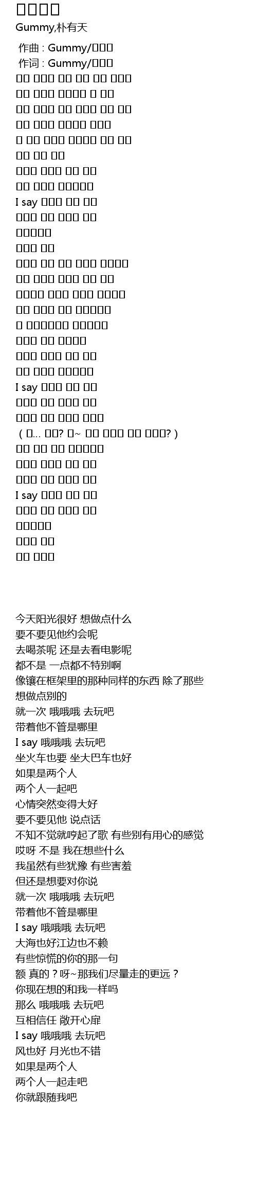 | [02:54.450] | I say 哦哦哦 去玩吧 |