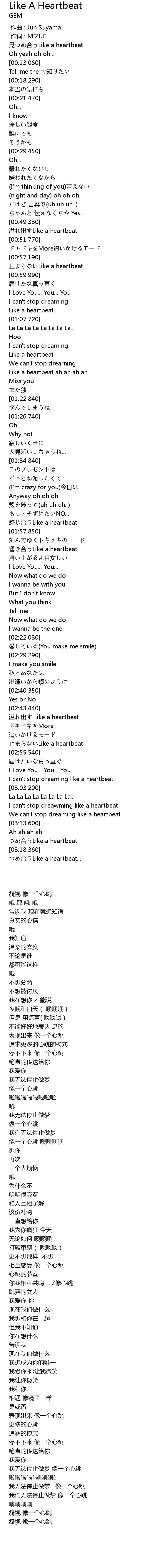 | [02:52.960] | 止まらないLike a heartbeat |