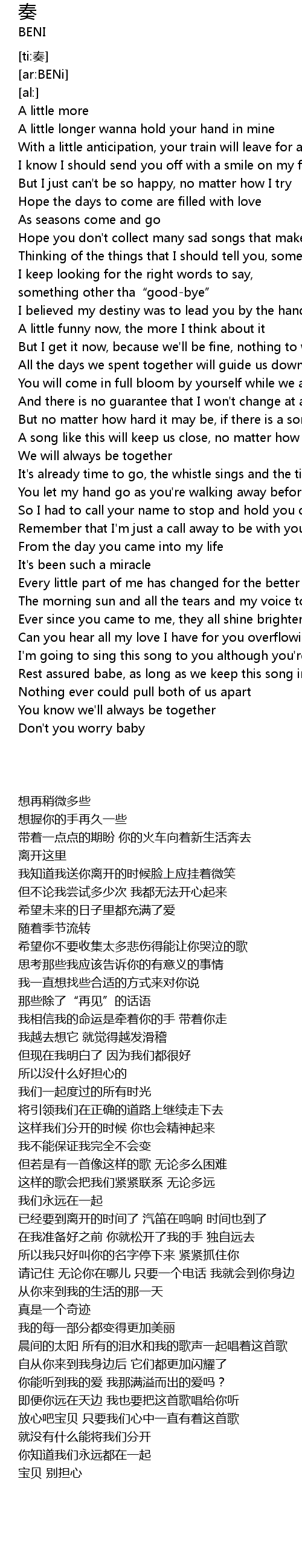 | [00:43.94] | A little longer wanna hold your hand in mine |