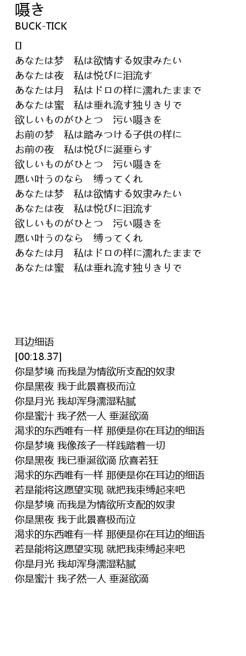 | [00:46.13] | 你是梦境 而我是为情欲所支配的奴隶 |