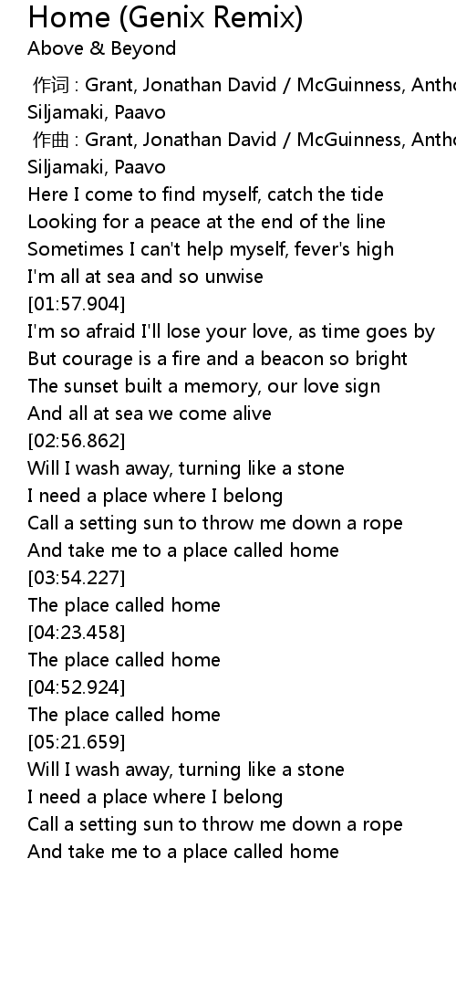 | [03:46.834] | And take me to a place called home |