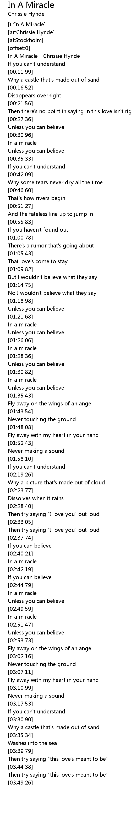 In A Miracle - Chrissie Hynde |
