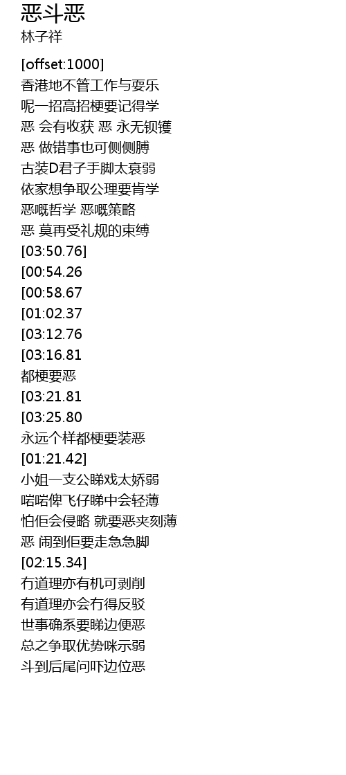 | [03:30.87][03:12.76][02:54.84] | 恶斗恶 成日斗有冇pok |