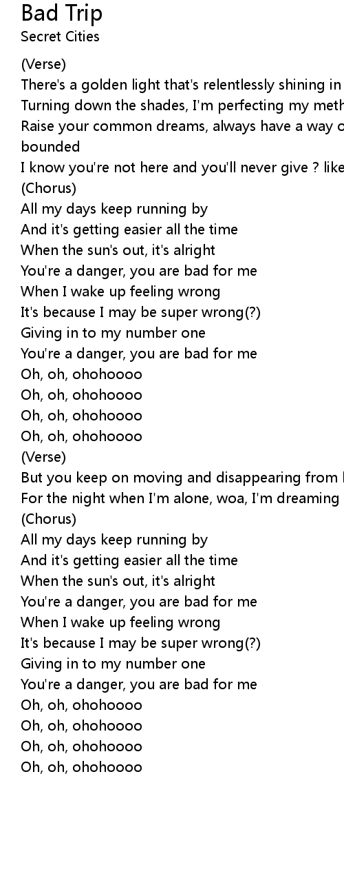 You're a danger, you are bad for me |