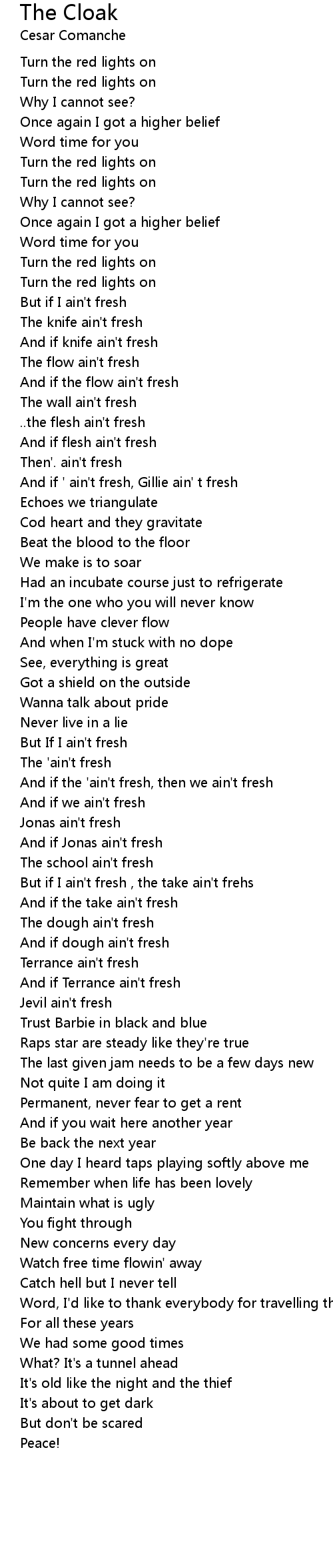 And if the 'ain't fresh, then we ain't fresh |