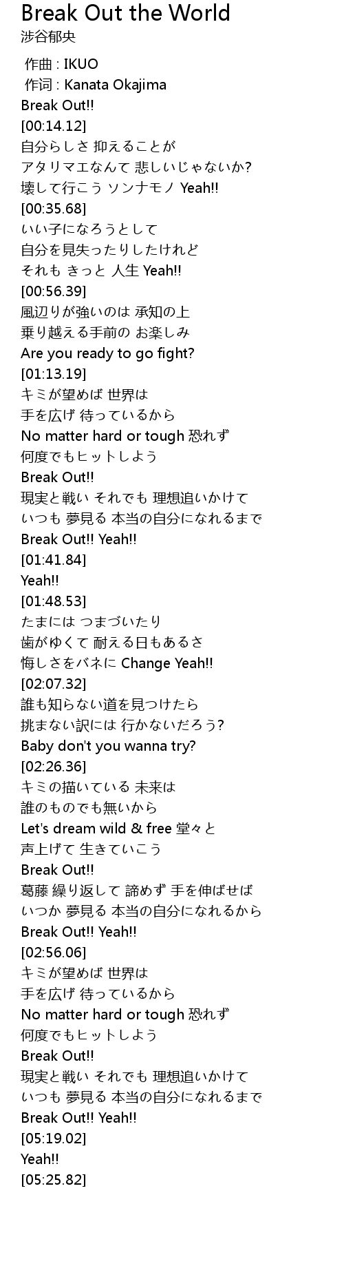 | [00:00.11] | zuò cí : Kanata Okajima |