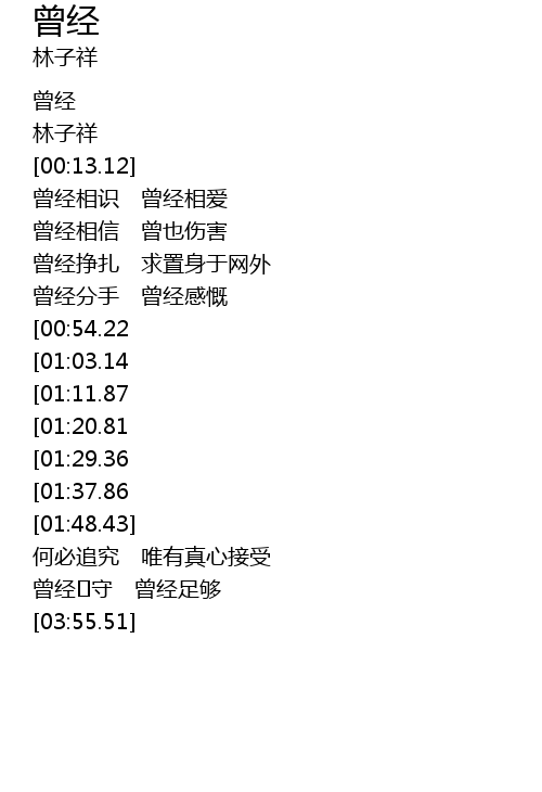 | [00:19.10] | ceng jing xiang shi ceng jing xiang ai |