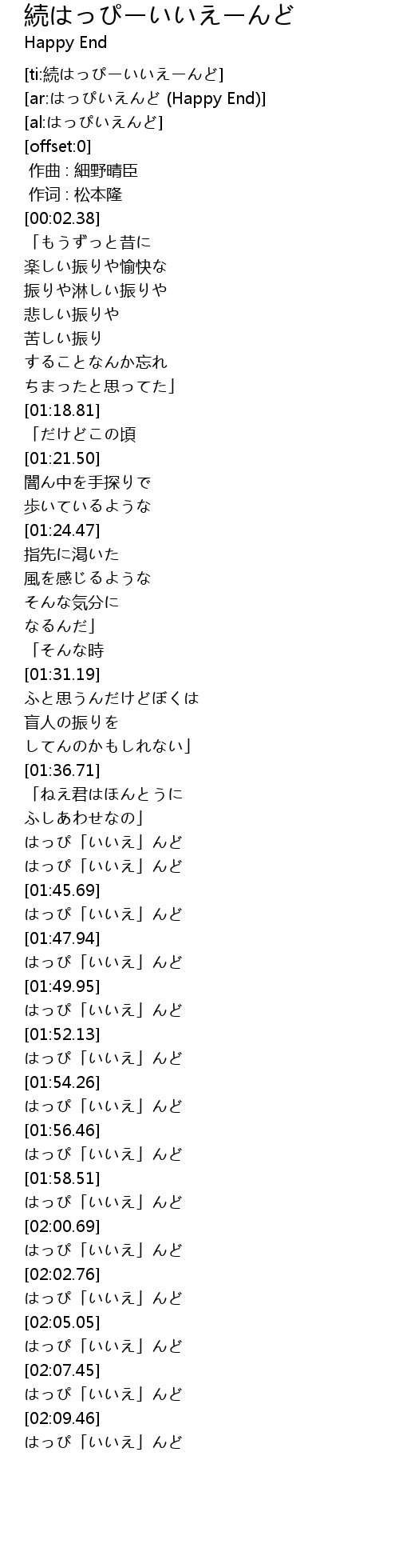 [ti:続はっぴーいいえーんど] |