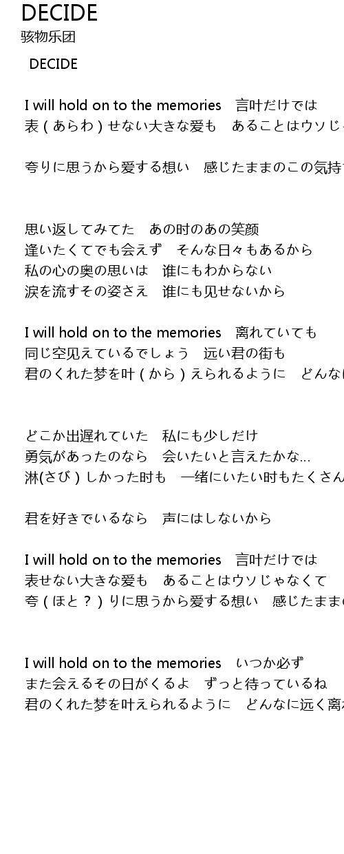| I will hold on to the memories 言叶だけでは | |