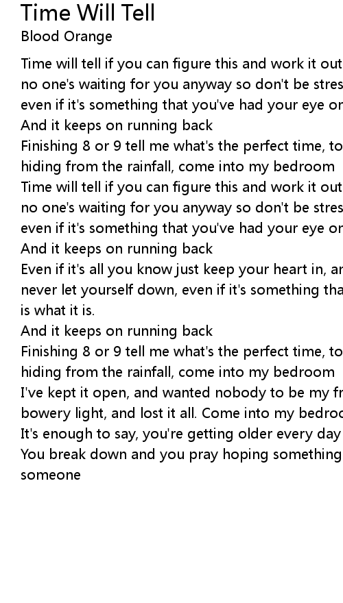 Finishing 8 or 9 tell me what's the perfect time, told you i'll be waiting hiding from the rainfall, come into my bedroom |