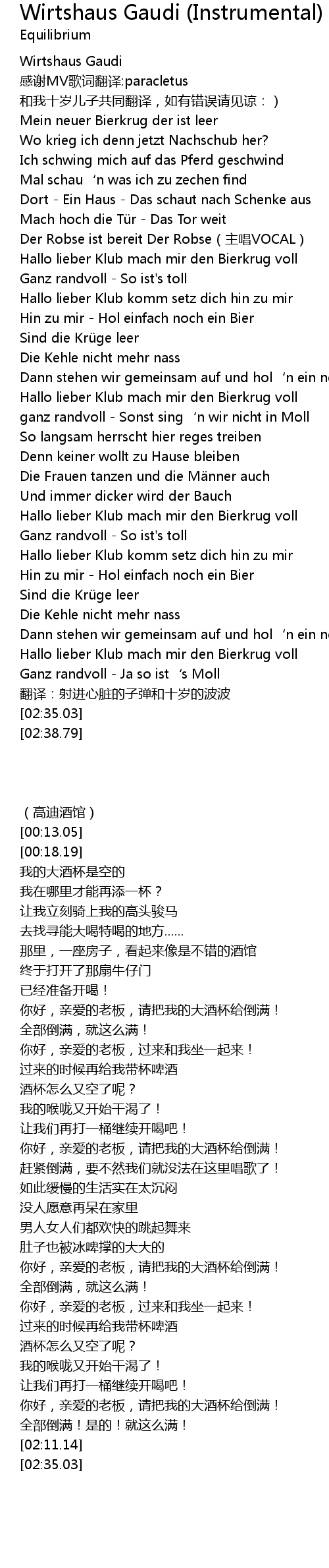 | 歌曲 | Wirtshaus Gaudi (Instrumental) |