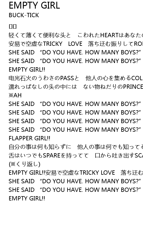 | EMPTY GIRL!!安易で空虚なTRICKY LOVE 落ち迂む振りしてROMANTIC | |