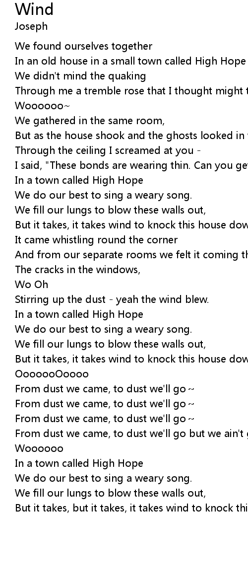| [03:55.83] | But it takes, but it takes, it takes wind to knock this house down. |