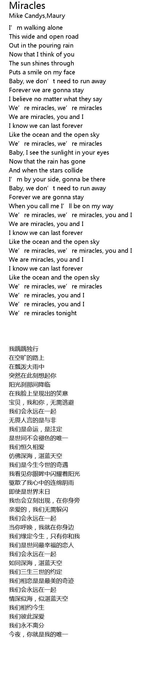 | 歌曲 | Miracles |