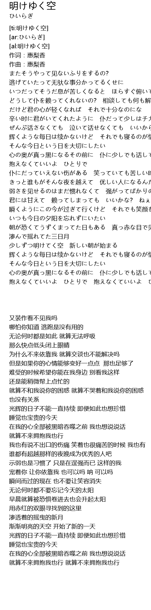 | [04:18.68] | 渐渐明亮的天空 开始了新的一天 |