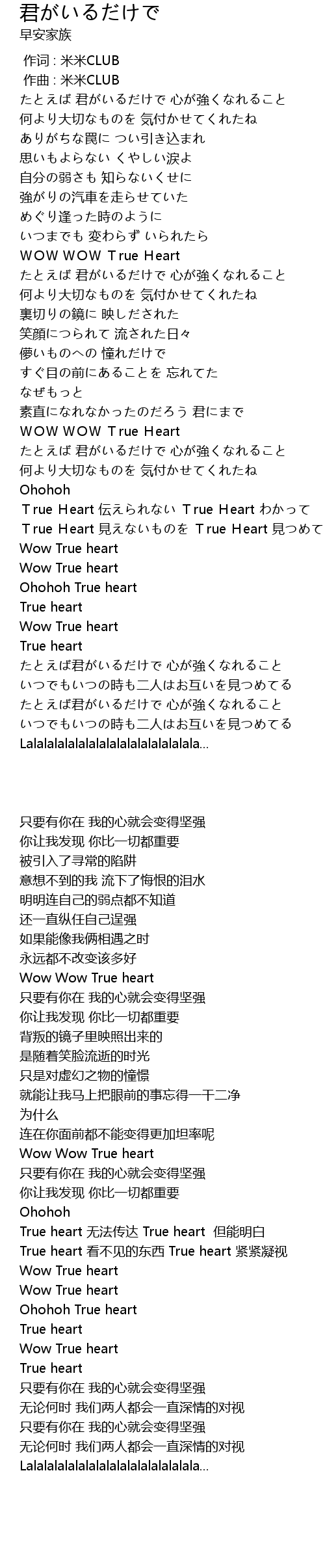 | [02:56.574] | True heart 看不见的东西 True heart 紧紧凝视 |