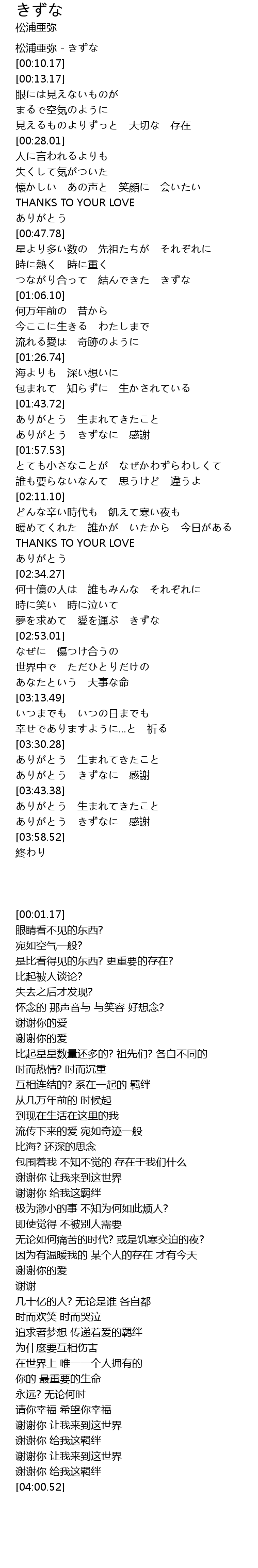 谢谢你 让我来到这世界 |