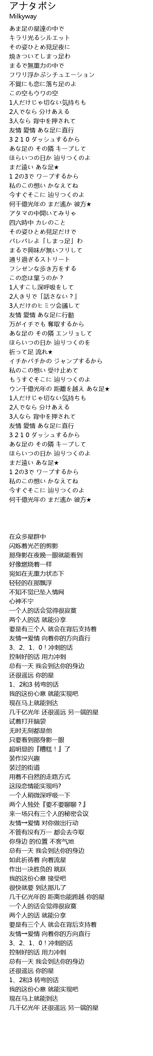 | [00:22.38] | あま足の星達の中で |