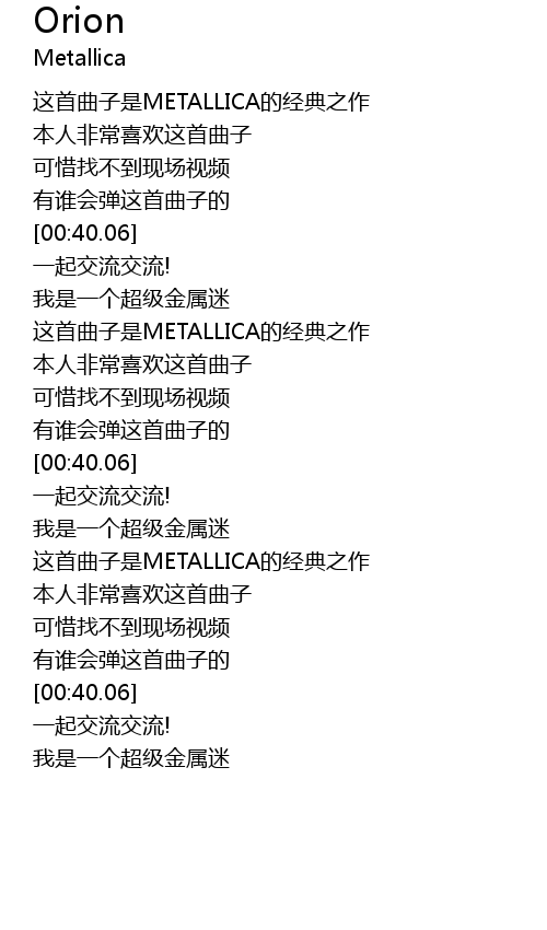 | [00:06.80] | 这首曲子是METALLICA的经典之作 |