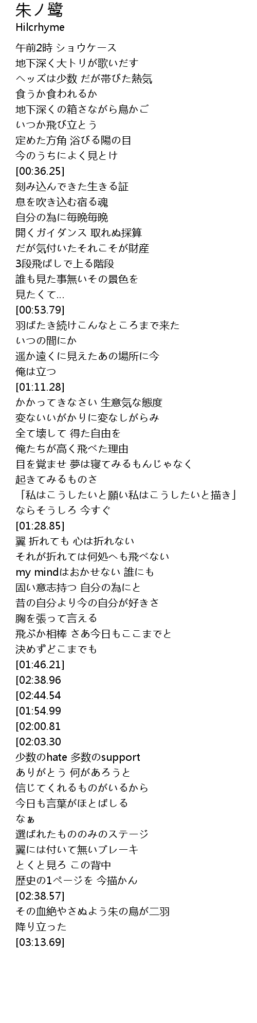 | [03:05.03] | その血絶やさぬよう朱の鳥が二羽 |