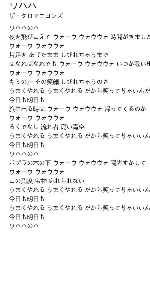 | はなればなれでも ウォーウ ウォウウォ いつか歌い出す ウォーウ ウォウウォ | |