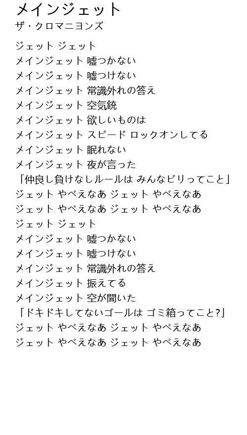 | 歌曲 | メインジェット |