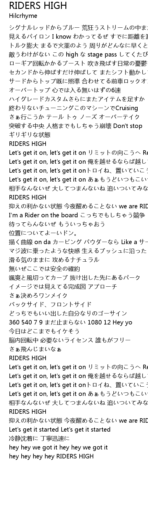 | hey hey hey hey RIDERS HIGH |